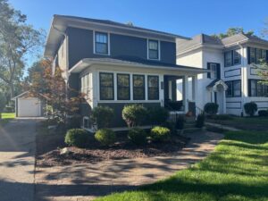 The American Foursquare is a post-Victorian house type that emerged in the early 1900s and was an architectural reaction against the ornateness and complexity found in Victorian homes. The Foursquare was designed to maximize square footage on small lots and was an inexpensive home that provided large amounts of comfortable living space. Its simple form allowed styles such as Colonial, Craftsman, and Prairie to be applied to it. Typical Foursquare characteristics include a square plan, a hip roof, wide eaves, a central attic dormer, and a front porch (usually spanning the width of the house).